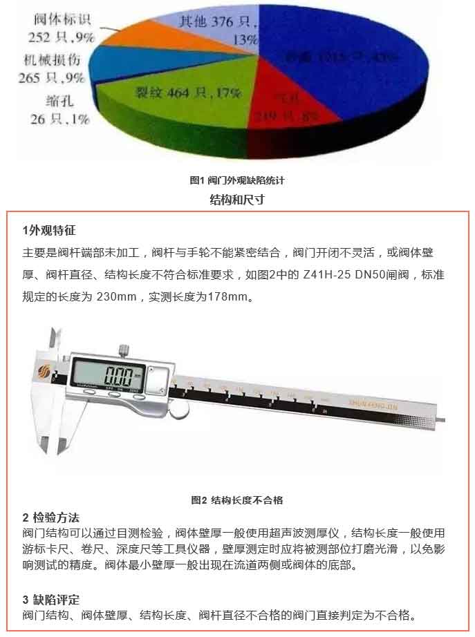 閥門表面的機械損傷目視檢驗即可發(fā)現(xiàn),缺陷的深度可用焊縫檢驗尺或深度尺進行測量。