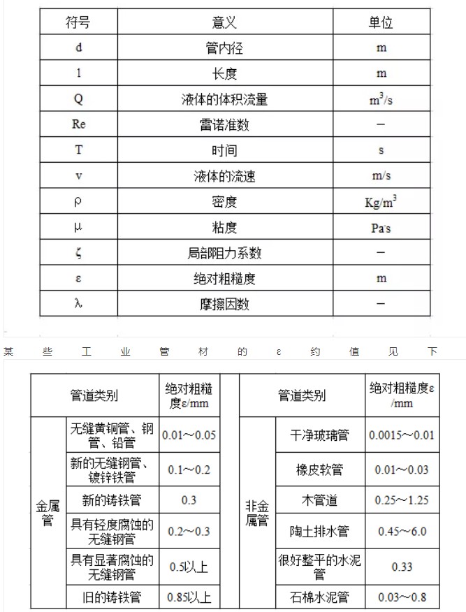 計算式中各參數符號的意義某些工業管材的ε約值見下表 管網局部阻力計算 常用管件和閥件底局部阻力系數ζ