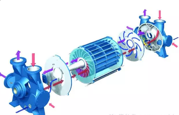 水環輪式自吸泵是將水環輪和水泵葉輪組合在一個殼體內,借助水環輪將氣體排出,實現自吸。當泵正常工作后,可通過閥截斷水環輪和水泵葉輪的通道,并且放掉水環輪內的液體。