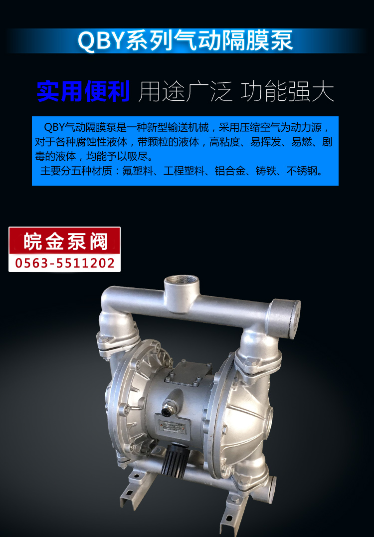 QBY氣動(dòng)隔膜泵既能抽送流動(dòng)的液體,又能輸送一些不易流動(dòng)的介質(zhì),具有自吸泵、潛水泵、屏蔽泵、泥漿泵和雜質(zhì)泵等輸送機(jī)械的許多優(yōu)點(diǎn)。