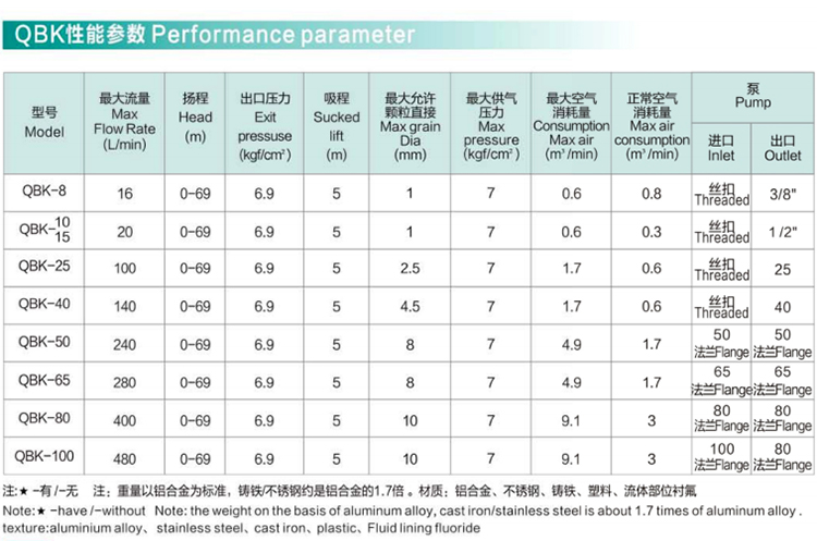 皖金泵閥氣動(dòng)隔膜泵主要參數(shù):