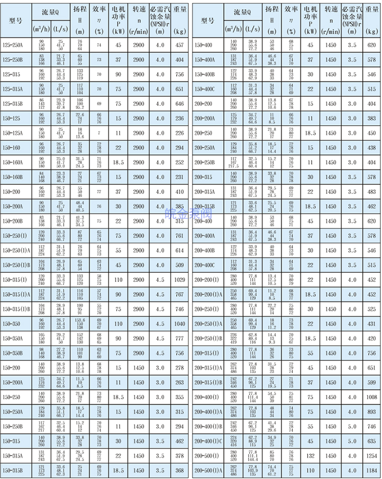 皖金泵閥立式管道離心泵主要參數:
